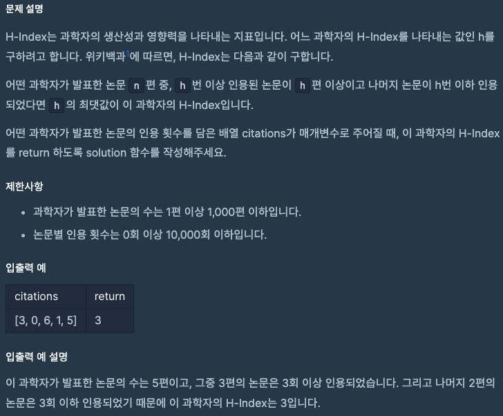 - 정렬을 사용해서 인용 횟수를 오름차순으로 정리해 인용된 논문의 수를 쉽게 관리한다.