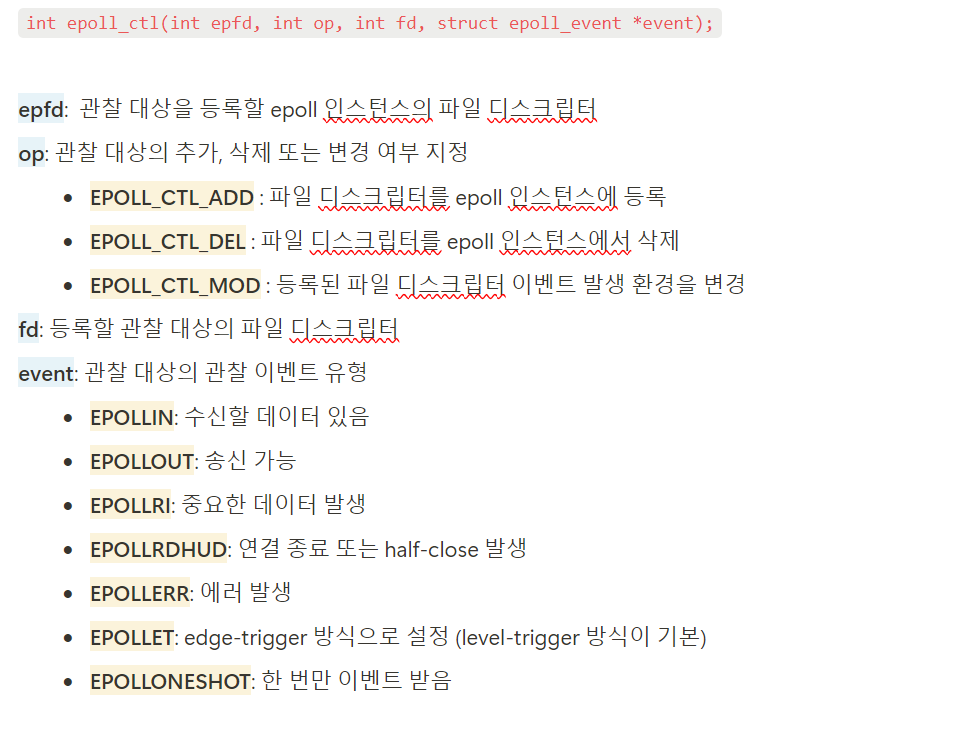 epoll_ctlepoll에 파일 디스크립터들을 등록/수정/삭제 하는 함수
