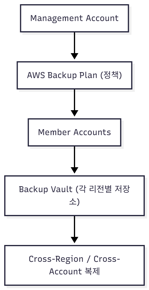 A["Management Account"] --> B["AWS Backup Plan (정책)"]