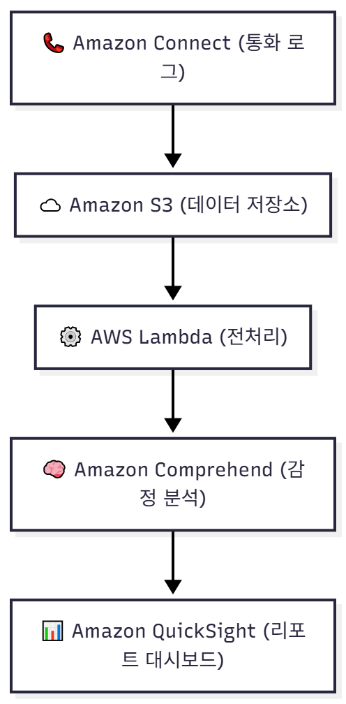 대화 내용은 S3에 녹음/저장되고, 분석은 Comprehend와 QuickSight로 시각화