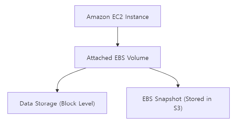 A["Amazon EC2 Instance"] --> B["Attached EBS Volume"]
