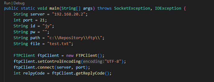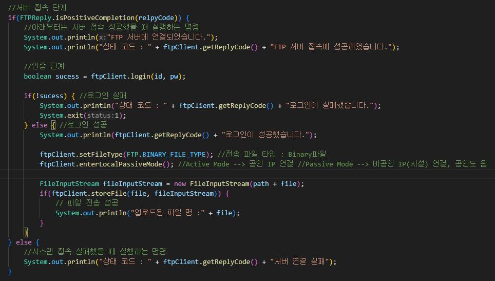 System.out.println("상태 코드 : " + ftpClient.getReplyCode() + "서버 연결 실패");