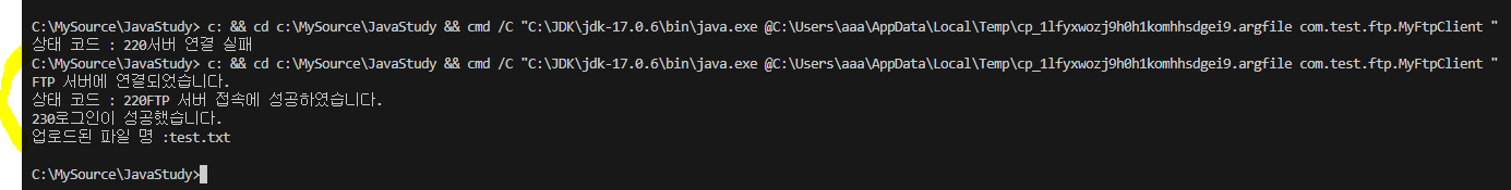 System.out.println("상태 코드 : " + ftpClient.getReplyCode() + "FTP 서버 접속에 성공하였습니다.");