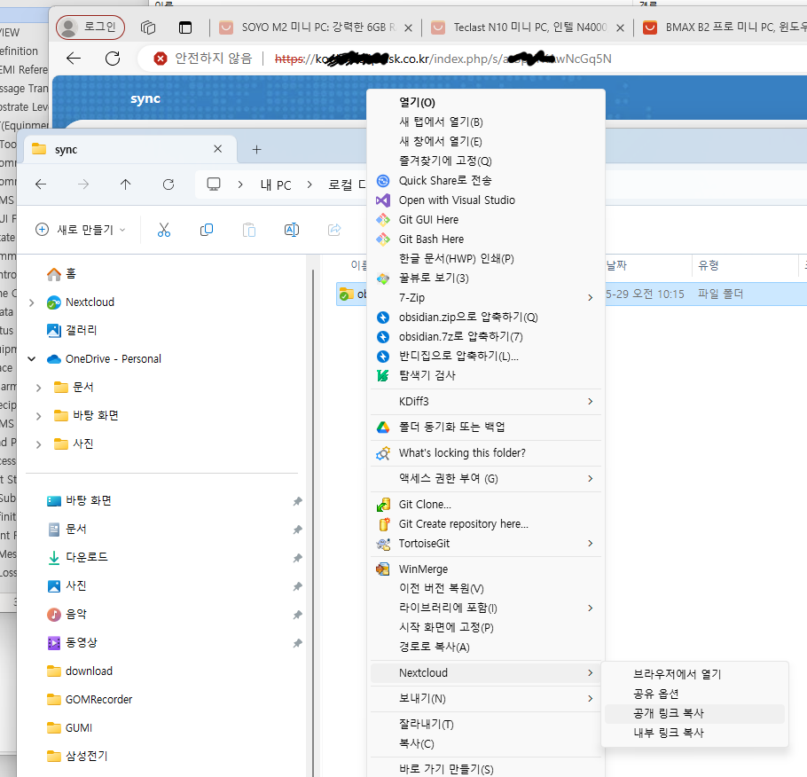 nextcloud는 탐색기에 동기화 상태를 보여주어, 마치 상용 프로그램을 쓰는 느낌이다.