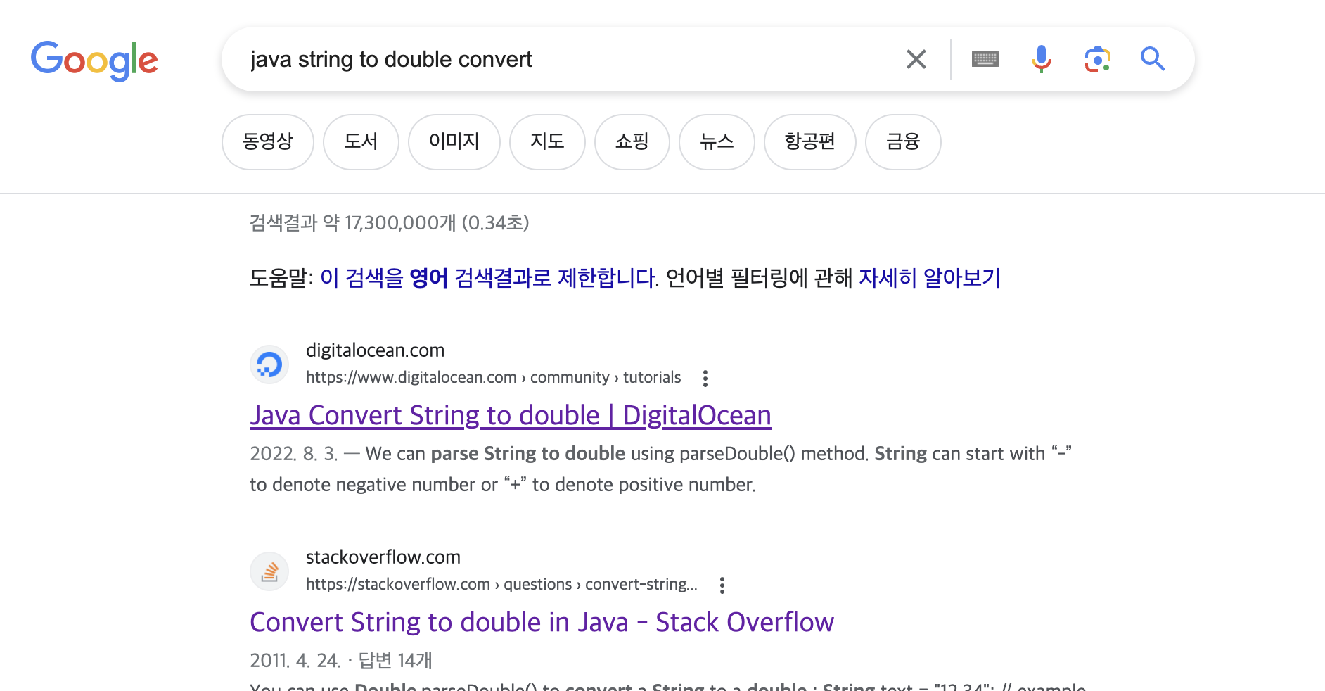 따라서, String형을 Double형으로 변환하는 코드를 검색한다.
