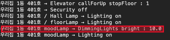 입력한 값만큼 무드등 밝기가 설정되어 켜진 것을 알 수 있다.