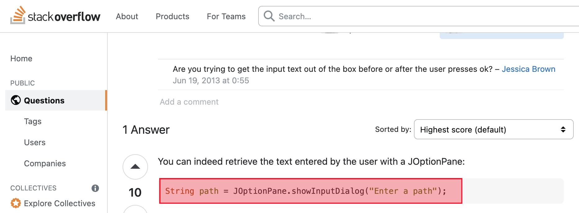 JOptionPane이라는 곳에서 showInputDialog라는 기능을 가져오나보다.