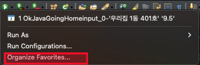 이클립스에 실행방법을 미리 정의해 둘 수 있다. 실행 버튼 옆 더보기를 클릭해보자.