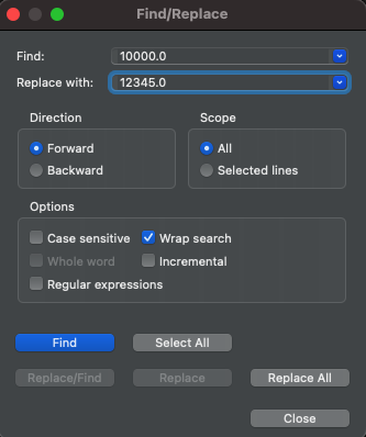 command+F 로 Find/Replace 를 열어 공급가를 변경해줄 수 있다.