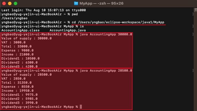 System.out.println("Value of supply : "+10000.0); // 공급가