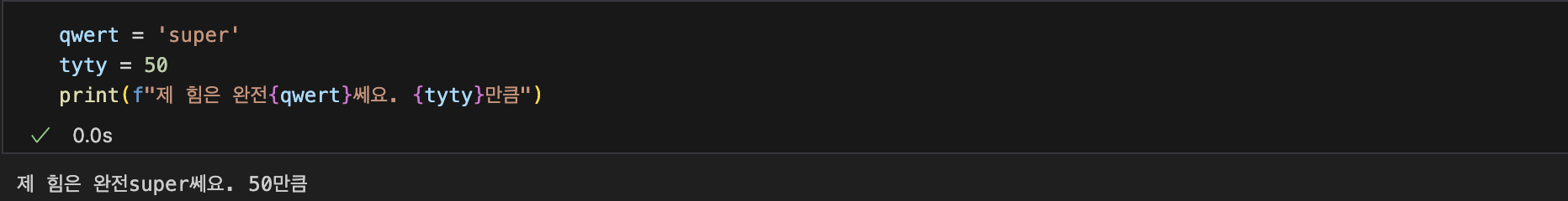 print(f"제 힘은 완전{qwert}쎄요. {tyty}만큼")