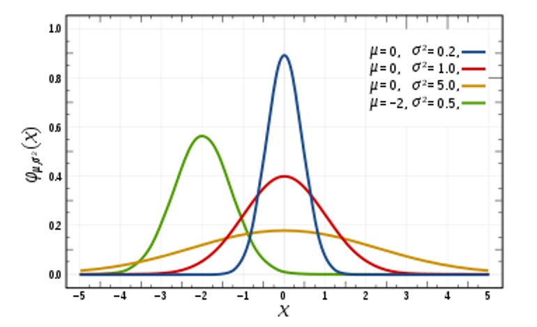 평균 0, 분산 1을 가지는 경우 이를 표준정규분포라 합니다