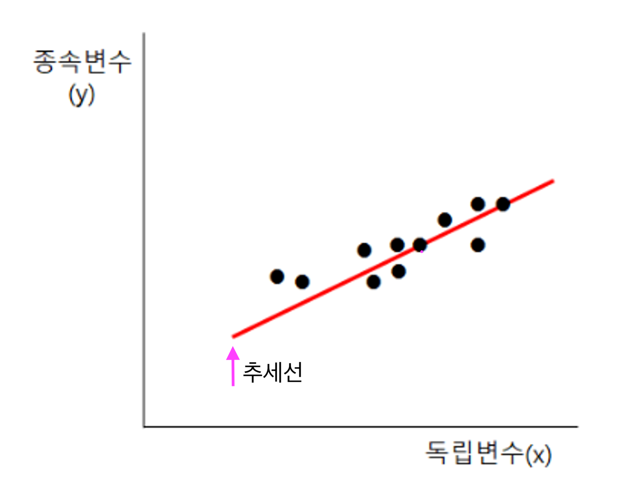 그래프 속 빨간색 선은 추세선이라고 종속변수를 예측할 수 있습니다 !
