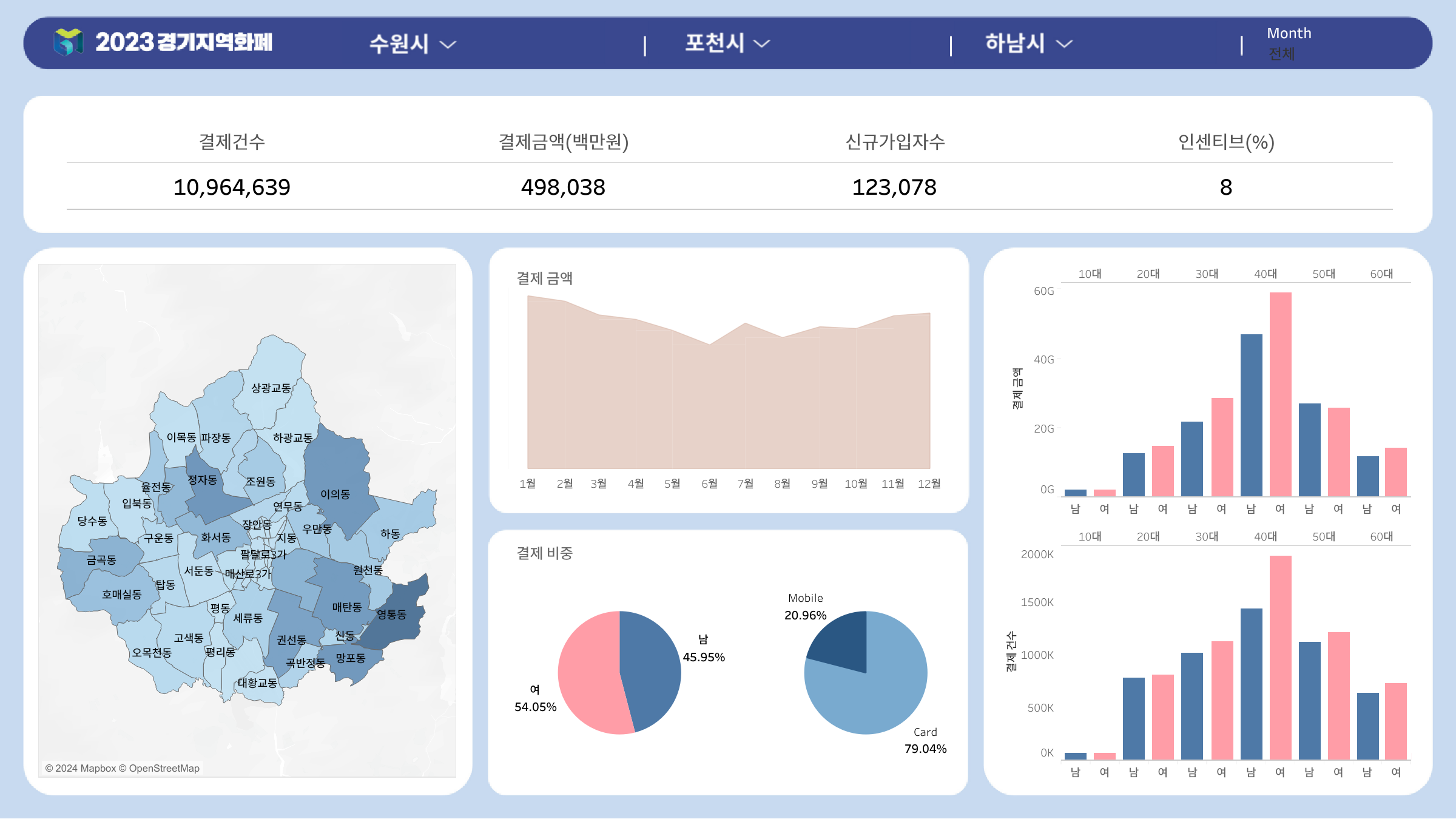 - 분석 결과를 바탕으로 남성 지원을 늘리고 여성 지역화폐 사용률을 높이자는 제안은 실용적이므로 실제 정책이나 마케팅 전략에 반영될 수 있어, 인사이트의 실용성이 높다.