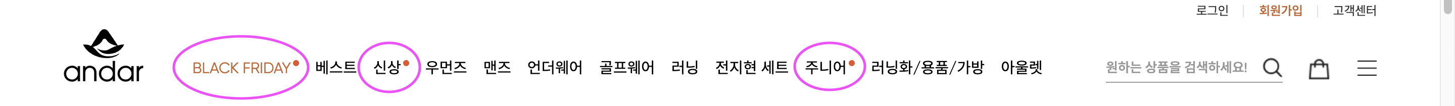 안다르 메인 홈페이지 카테고리를 보면