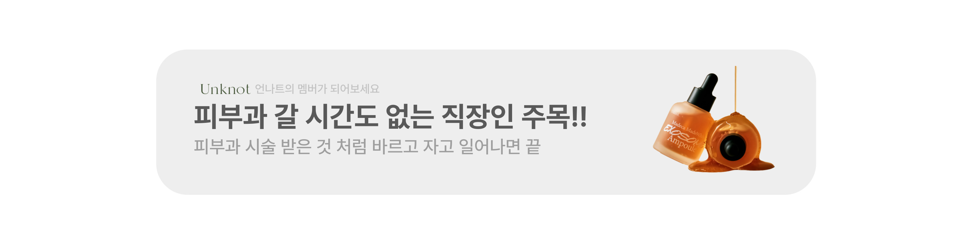 공홈 상세페이지에서 피부과 강조와 피부과에서 말할 만한 좋은 성분을 이야기 하고 있어 피부과 라는 워딩을 사용하기로메인 문구 : 피부과 갈 시간도 없는 직장인 주목!!