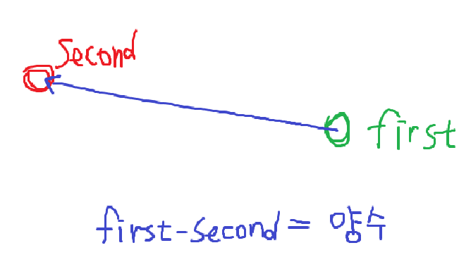 첫번째 터치 위치에서 왼쪽에 배치된 두번째 위치를 빼면 무조건 +값이 나오겠죠?