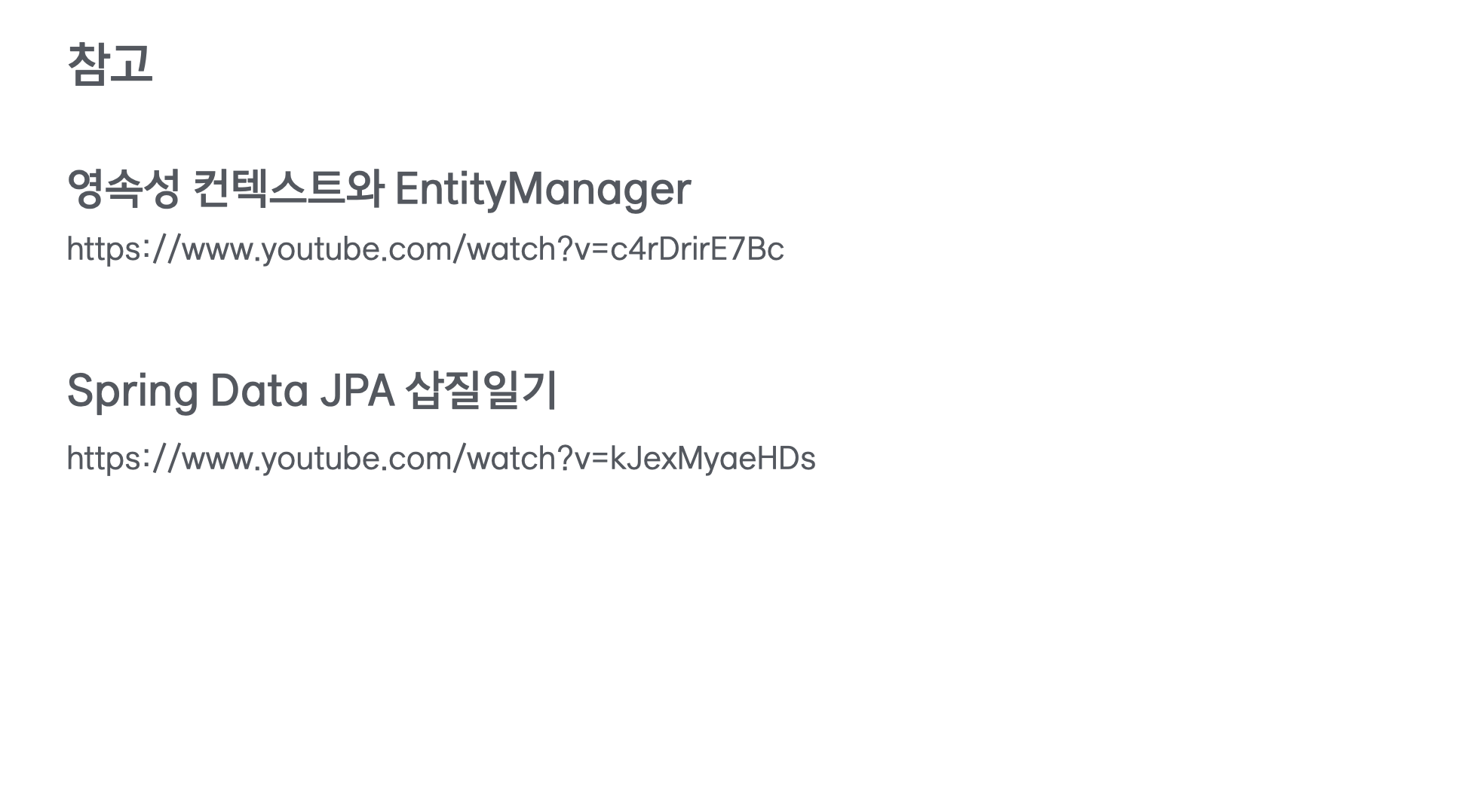 하지만, JPA를 제대로 사용하려면 영속성 컨텍스트에 대해서 꼭 이해하고 넘어가야하기 때문에, 추후에 따로 공부를 해보시는 걸 추천드렸습니다!