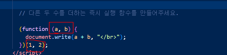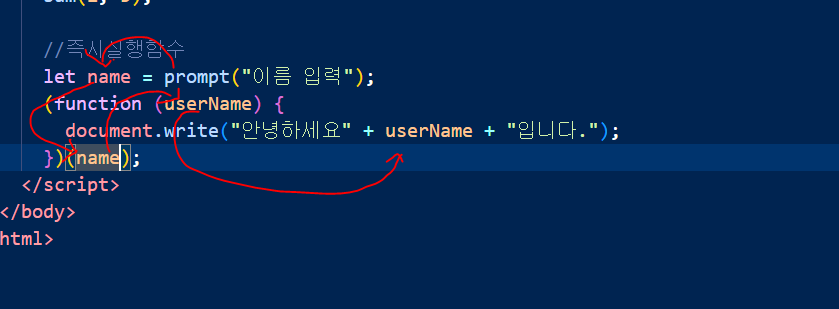 하지만 한번만 실행하는 함수라면 함수를 정의하면서 동시에 실행할 수도 있다.