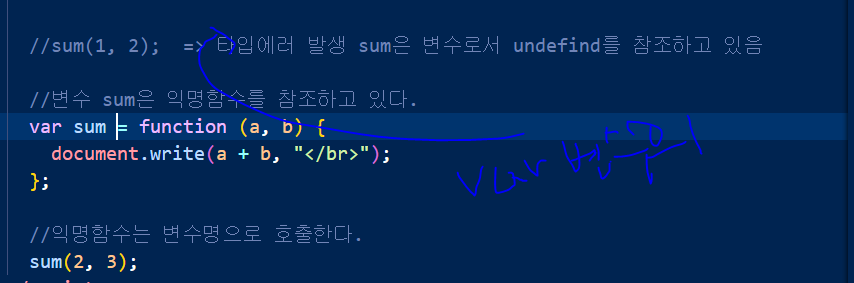 var sum은 하나의 변수이고, 값을 할당하기 전에는 undefined값이 붙는다.