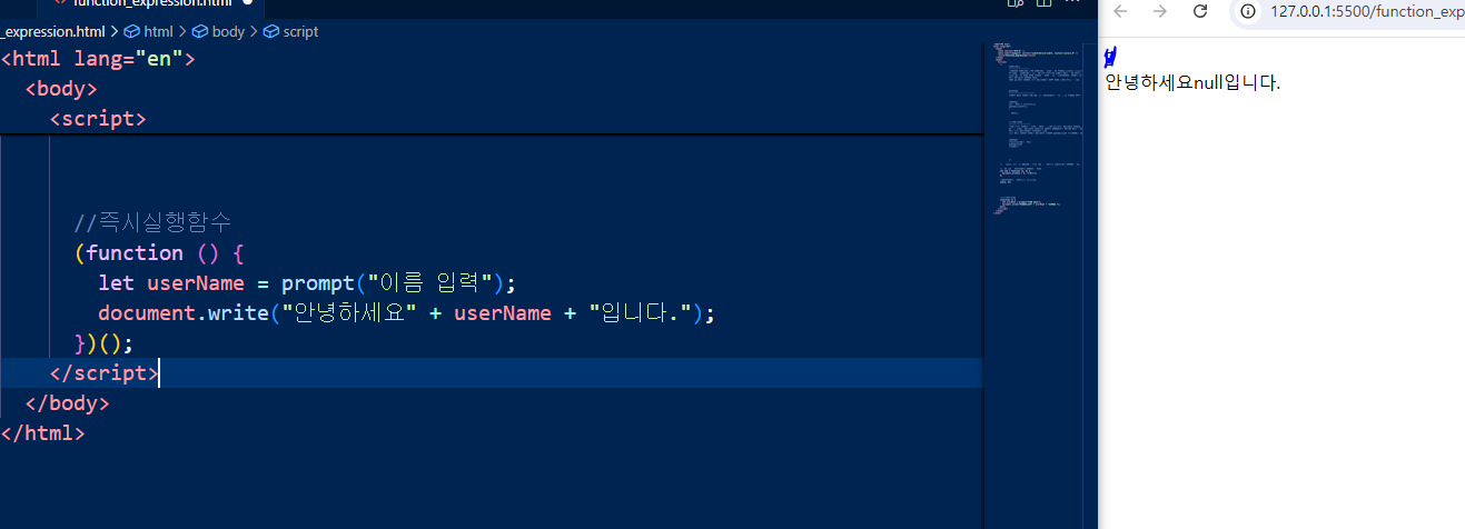 즉시 실행 함수는 함수를 실행하는 순간에 자바스크립트 해석기에서 함수를 해석한다.