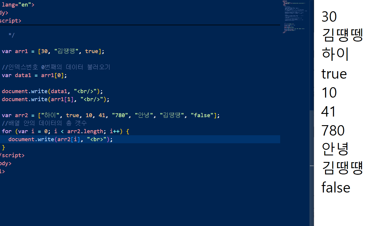 어레이1은 데이터 안에 있으니까 데이터1을 불러온 것이다.