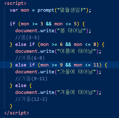 else if(조건식3){조건식3이 만족하면 실행할 코드;}