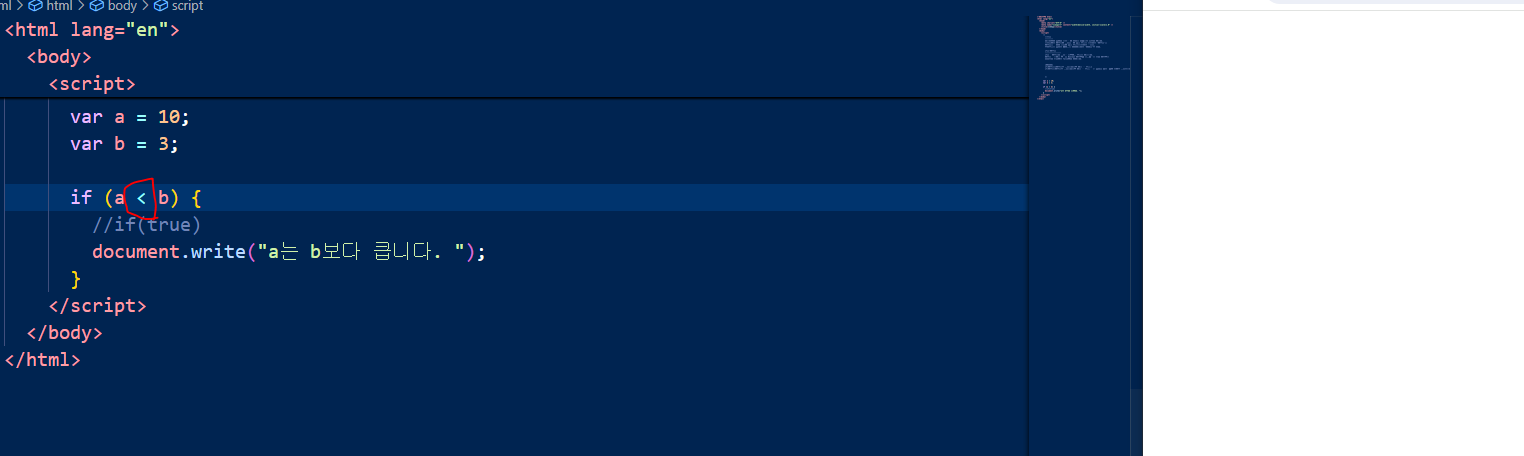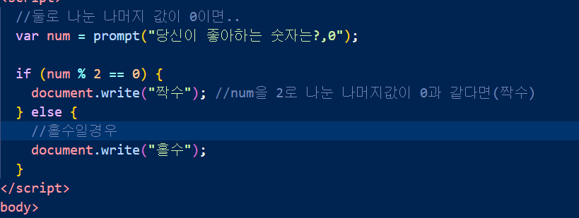 if(조건식)조건식이 만족했을경우 실행 할 코드; <- 중괄호 없는대신에 무조건 만족해야하고, 무조건 한줄이어야함. 지금은 안 쓸거임