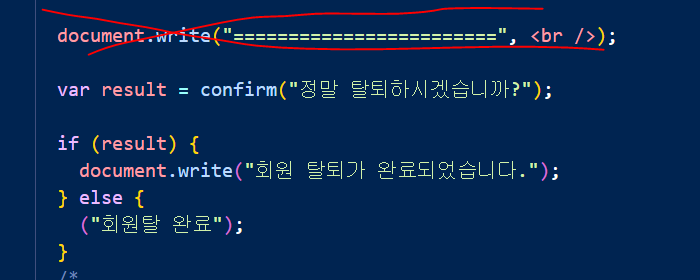 confirm("메세지");