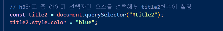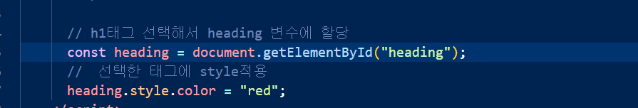 getElementById()를 사용하면 특정한 id가 포함된 해당 요소를 선택할 수 있다.