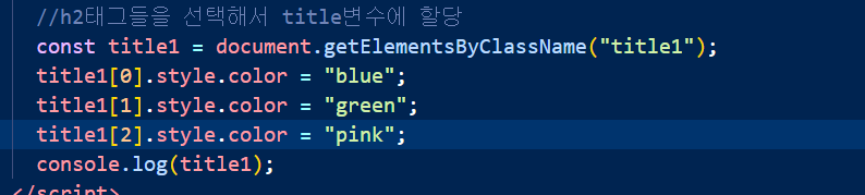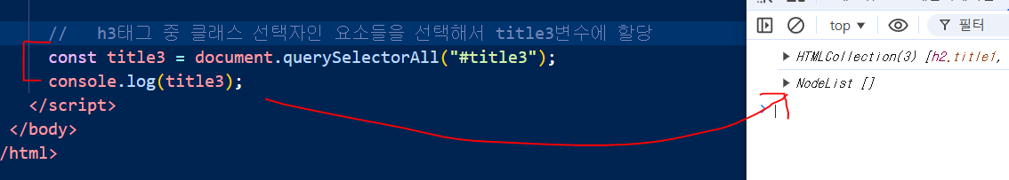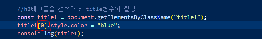 html collaction안에 배열 데이터처럼 요소객체가 저장되므로 인덱스로 불러온다.