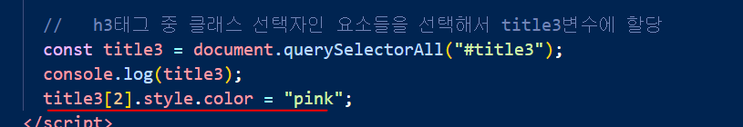 class선택자나 태그선택자처럼 반환값이 여러 개라면 querySelectorALL()을