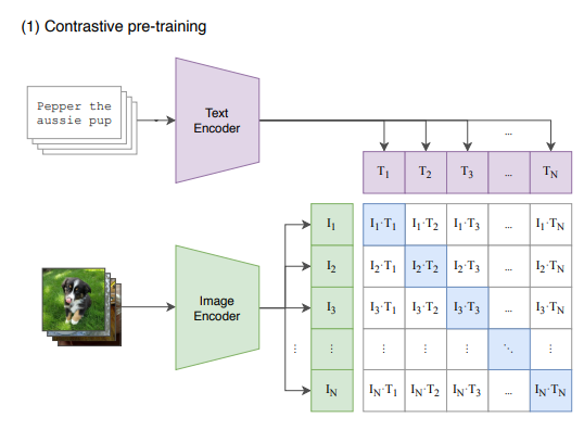 저자들이 접근한 방식은 텍스트의 정확한 단어를 예측하는 것이 아니라, 전체 텍스트가 어떤 이미지와 짝지어졌는지를 예측하는 것입니다. 즉, 텍스트의 특징과 비슷한 특징을 가진 이미지를 매칭하면 되는 task로 생각한 것입니다.