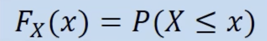 - 확률 변수가 특정 값 이하일 확률을 나타내는 함수, 특정 값까지의 확률을 누적해서 더한 값
