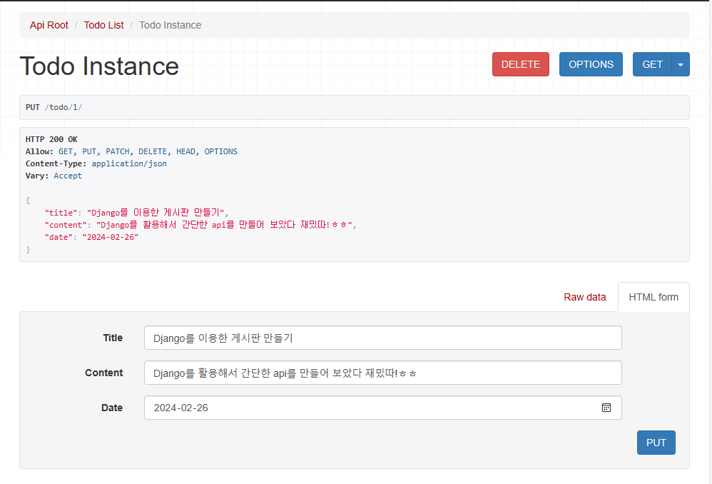 이렇게 DRF로 RESTful한 API를 만들어봤습니다.
