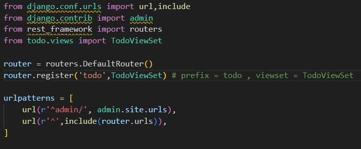 DRF는 url을 자동으로 맵핑해주는 router를 제공합니다. 앞서 생성한 viewset을 router에 연결하게 되면 자동으로 url을 맵핑해주어 사용자가 직접 url을 맵핑하지 않아도 됩니다.