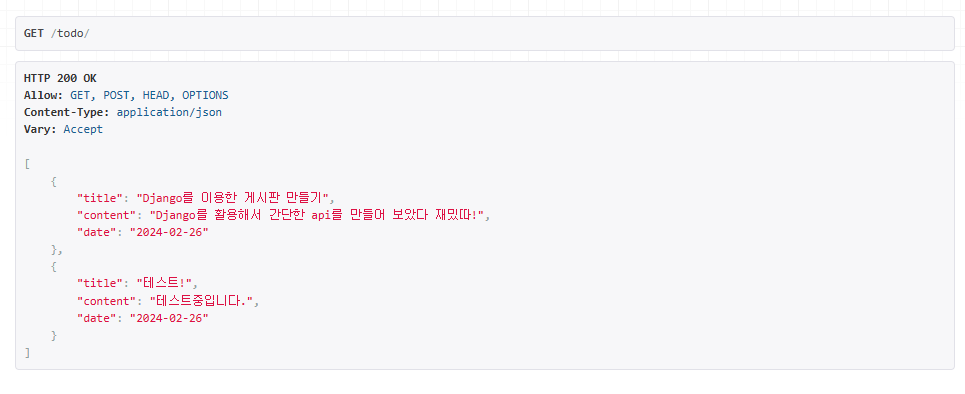 이렇게 저장한 todo 객체의 정보가 json 형태로 반환되는것을 볼 수 있습니다.