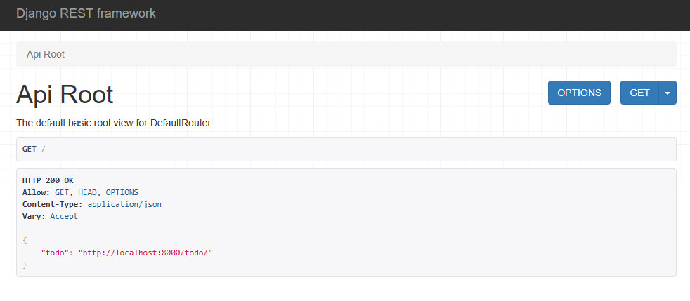 localhost:8000 으로 들어오면 아래와 같은 화면이 보입니다.