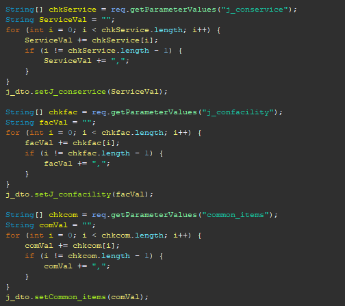 객실공통, 편의서비스같은 경우 체크박스를 통해 등록하기때문에 체크한 문자열 뒤에