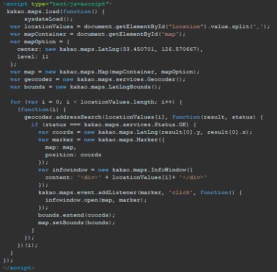 우측은 GeoLocation으로 마커 표시 Kakao 지도 Web API을 사용합니다.