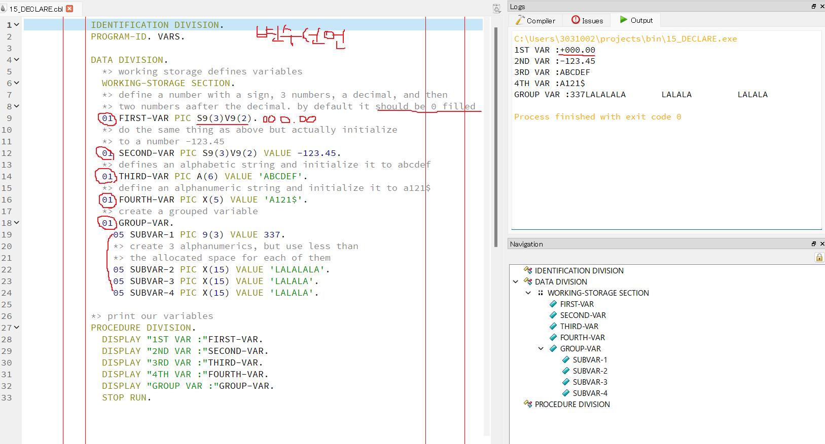 01 NEG-NUM PIC S9(9) VALUE -1234.