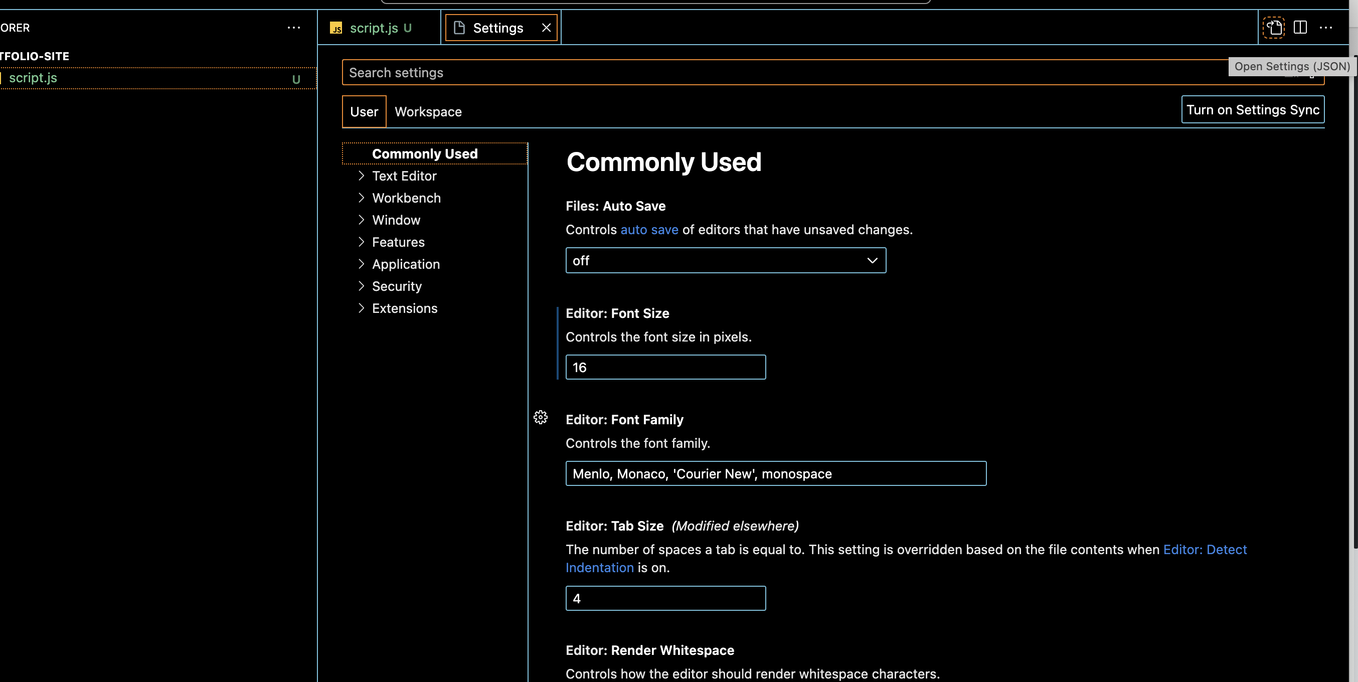 Setting : Command + ,