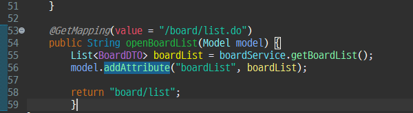 • BoardService에서 호출한 getBoardList 메서드의 실행 결과물을 저장