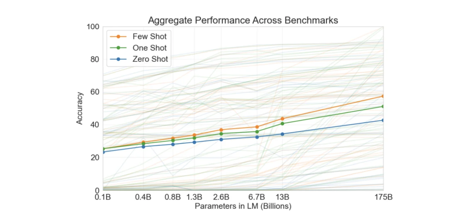 위 그림을 보면 one-shot (예시 한개) 이 zero shot보다 acc가 높고, few shot(예시 여러개)의 경우 acc가 더 높은 것을 확인할 수 있습니다.