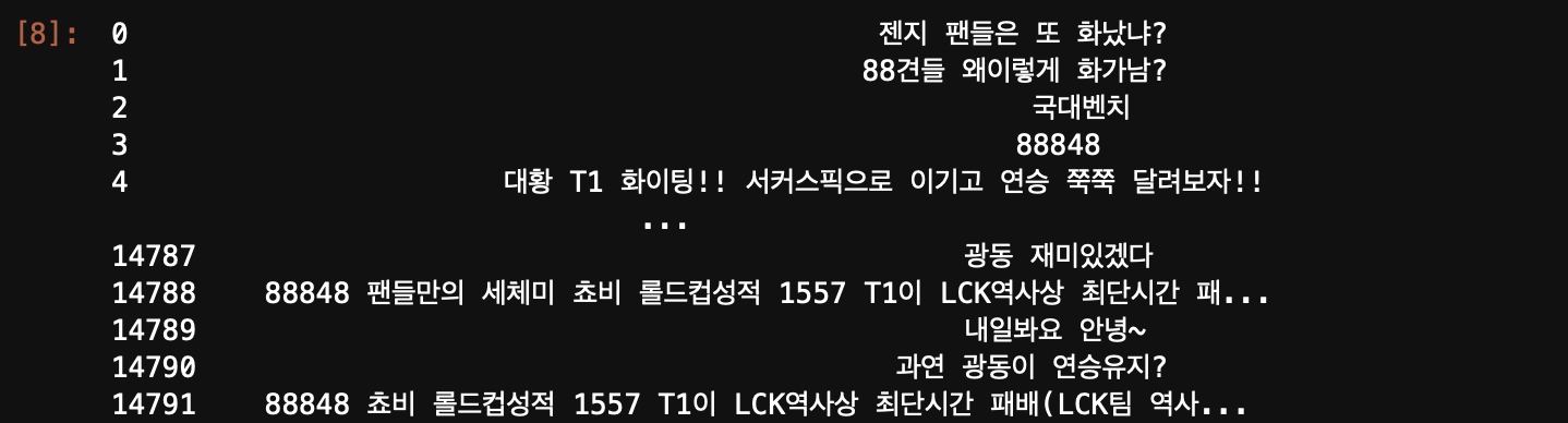 제가 예전에 수집한 LCK 채팅 데이터의 일부입니다.