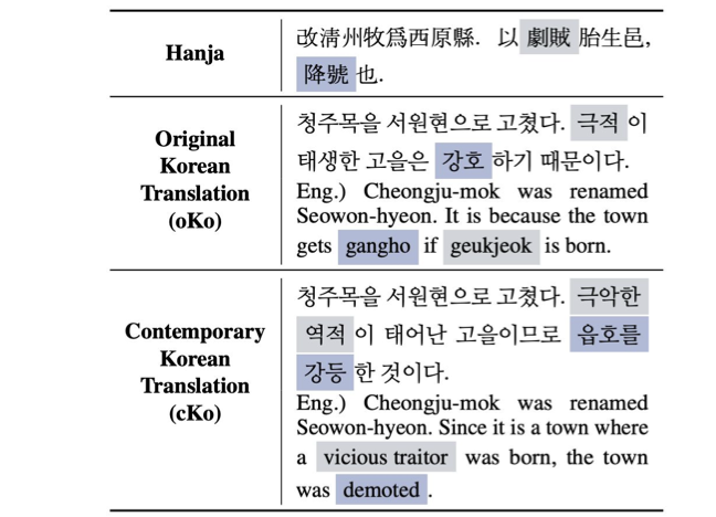 위 사진은 Translating Hanja Historical Documents to Contemporary Korean and English (Son et al., 2022)에서 소개된 고전어 데이터셋의 일부입니다.