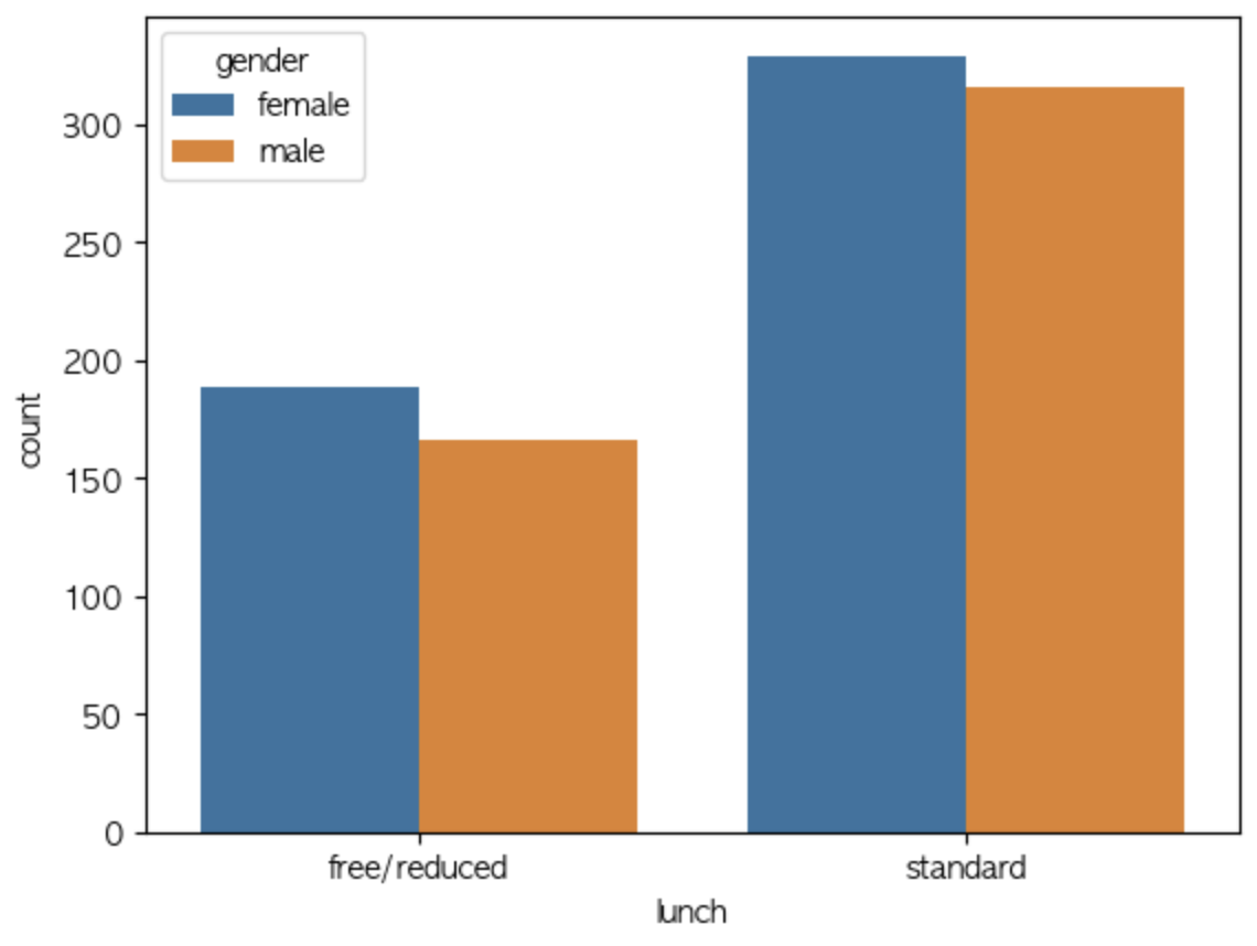 근데 seaborn을 활용하니 hue = 'race'를 통해 남녀 구별을 하면서 그래프를 각각에 맞는 barplot으로 변경해줬군요.