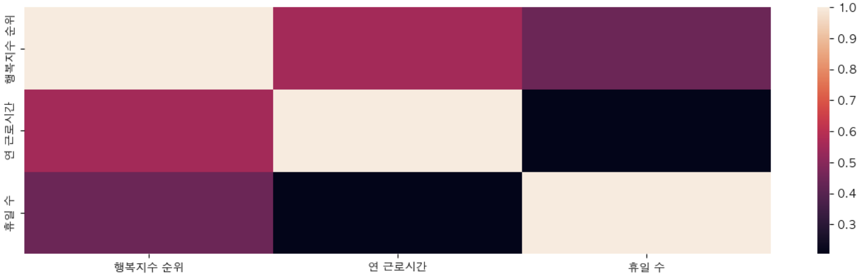 df_corr_s = df_all[['행복지수 순위','연 근로시간', '휴일 수']].corr(method='spearman')