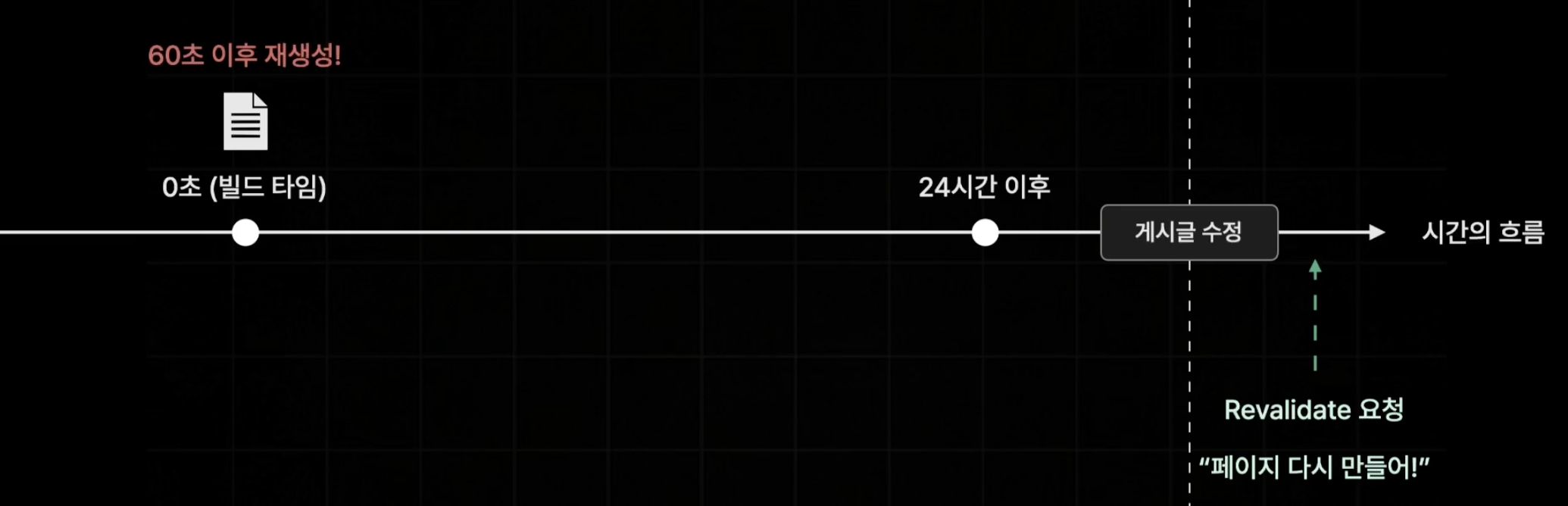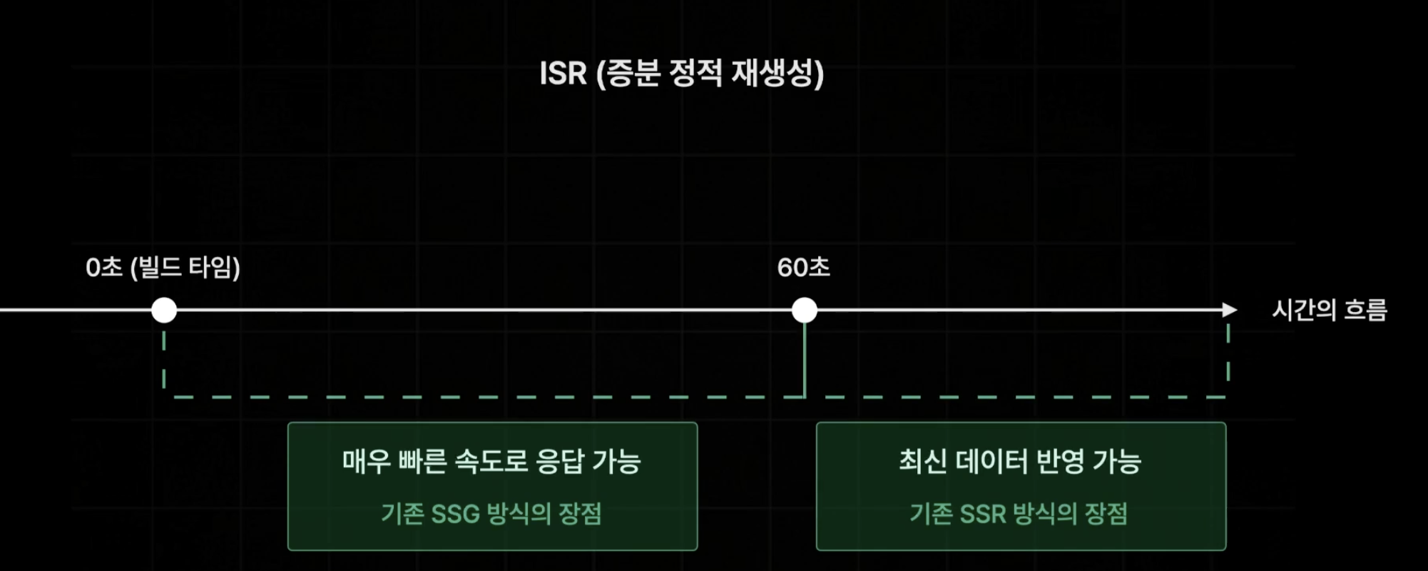 즉, 그냥 ssg 방식으로 생성된 정적 페이지를 일정 시간을 주기로 다시 생성하는 기술이다.