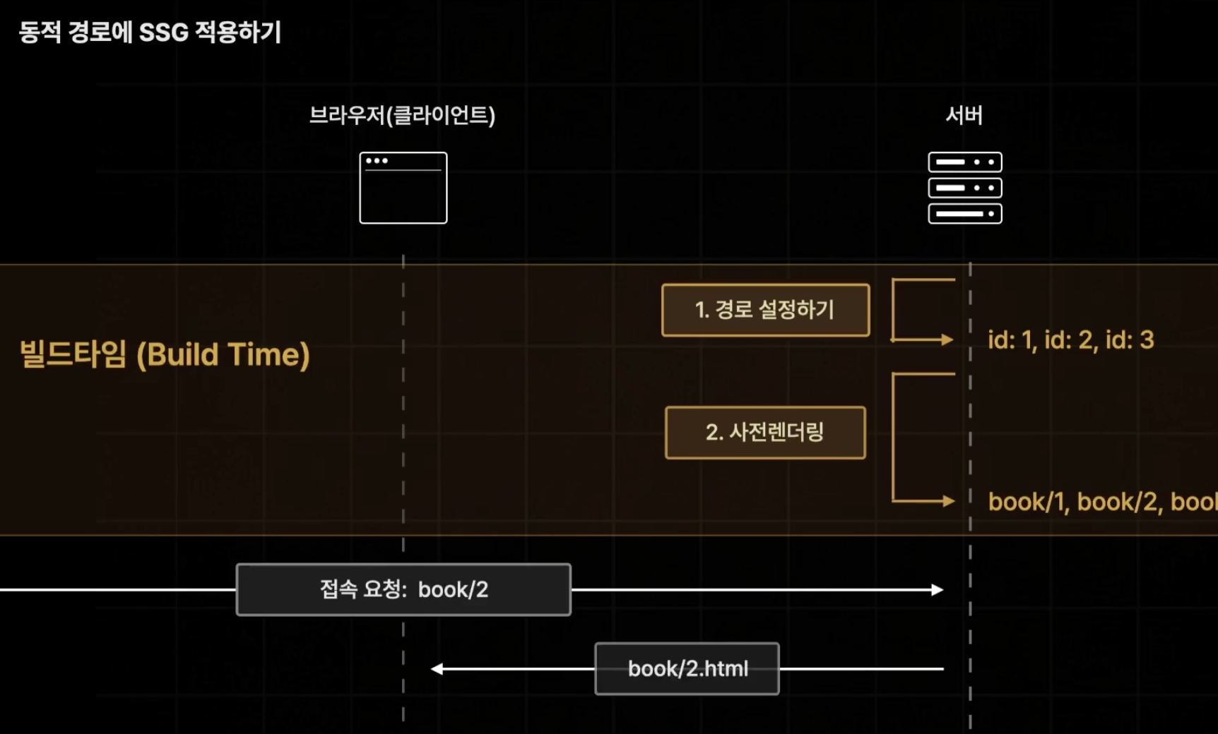 ssg는 정적 페이지 생성으로 사전 렌더링을 빌드 타임에 진행하여 ssr의 단점인 필요 데이터가 많아질때 속도를 개선할 수 있다.